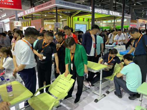 在今年的兩會上,不少人大代表提出在全國中小學(xué)推行“趴睡”變“躺睡”,充分保證中小學(xué)生實(shí)現(xiàn)優(yōu)質(zhì)午睡的建議,本次展會中科達(dá)的午休課桌椅便給出了解決方案。作為中科達(dá)全新推出的重點(diǎn)產(chǎn)品,午休課桌椅是第一次帶到全國觀眾的面前,一經(jīng)推出,立即聚焦全場,引起了現(xiàn)場觀眾們的圍觀點(diǎn)贊。大家都對這個新產(chǎn)品新概念表達(dá)了濃厚的興趣,仔細(xì)的詢問每一處產(chǎn)品細(xì)節(jié),紛紛躺在午休課桌椅上去親身體驗(yàn),并在體驗(yàn)后對午休課桌椅的創(chuàng)新性、實(shí)用性和舒適感交口稱贊,表示午休課桌椅從關(guān)愛學(xué)生的角度出發(fā),很好地解決了長久以來困擾著學(xué)生午間休息的難題。幫助學(xué)生們實(shí)現(xiàn)了從“趴睡”到“躺睡”的轉(zhuǎn)變,使學(xué)生們的午間休息效果大大增強(qiáng)。讓我們一起來回顧現(xiàn)場的一些精彩瞬間。