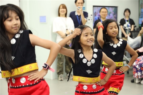 在后續(xù)的活動(dòng)中,孩子們向企業(yè)志愿者們展示了他們各民族的才藝。來自佤族的孩子向志愿者們展現(xiàn)了傳統(tǒng)的甩發(fā)舞,佤族人民以長發(fā)為美,佤族姑娘們伴隨著鼓點(diǎn)鮮明的音樂,甩動(dòng)起來的長發(fā)就像飄著的一塊塊黑綢緞,飄逸大氣,野性十足,自信展現(xiàn)著本民族獨(dú)特的文化魅力。來自納西族的孩子們帶著志愿者認(rèn)識(shí)他們的傳統(tǒng)文字——東巴文,這是世界上唯一一種還在使用的象形文字,距今已有1200多年的歷史。志愿者們借助形象的圖像表達(dá)認(rèn)識(shí)了東巴文中的十二生肖動(dòng)物文字,并和孩子們一起體驗(yàn)“東巴十二生肖”桌游,在充滿民族文化內(nèi)涵的益智游戲中,沉浸式感受納西族的智慧。各族青少年和企業(yè)志愿者們玩鬧在一起,活動(dòng)會(huì)場內(nèi)回蕩著大家的歌聲、笑聲。