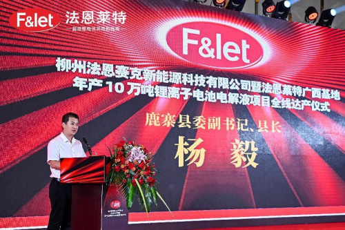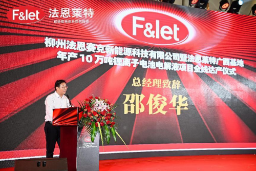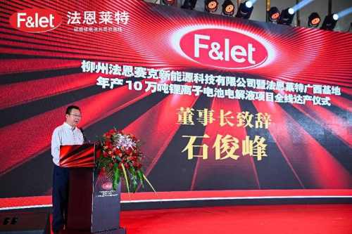 儀式上,法恩萊特邵俊華總經(jīng)理在致辭表示:柳州法恩賽克項(xiàng)目不僅是法恩萊特在華南區(qū)域作出的重大戰(zhàn)略部署,更是法恩萊特面向全球布局的重大舉措。法恩萊特將以此次項(xiàng)目全線達(dá)產(chǎn)為新的起點(diǎn),發(fā)揮公司的技術(shù)、戰(zhàn)略、規(guī)模和品牌等優(yōu)勢(shì),深耕細(xì)作新能源鋰電池行業(yè)材料電解液市場(chǎng),深化新能源鋰電池行業(yè)更大范圍、更寬領(lǐng)域的務(wù)實(shí)合作,為新能源汽車、儲(chǔ)能系統(tǒng)、消費(fèi)電池客戶提供更具優(yōu)勢(shì)、更高性能的超級(jí)鋰電池電解液解決方案,為新能源行業(yè)的持續(xù)創(chuàng)新貢獻(xiàn)更多力量。