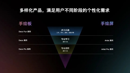 目前,XPPen 共有 2 大品類,5 大系列產(chǎn)品,包括數(shù)位板類的 Deco Fun、Deco、Deco Pro 系列及數(shù)位屏類 Artist、Artist Pro 系列產(chǎn)品。其中,Deco Fun 產(chǎn)品線系列面向多元樂趣用戶;Deco 和 Artist 產(chǎn)品線系列面向?qū)I(yè)學習用戶;Deco Pro 和 Artist Pro 產(chǎn)品線系列面向?qū)I(yè)進階用戶。全新的產(chǎn)品布局,可針對不同成長階段的用戶需求,打造從興趣入門到專業(yè)學習再到專業(yè)進階的產(chǎn)品矩陣。