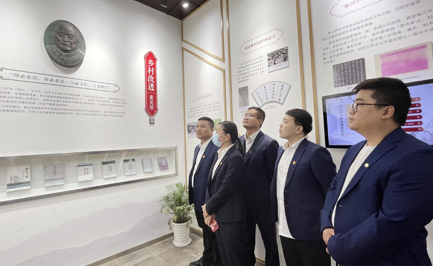 全體人員先后集中參觀了花橋杰出人物館和歷史陳列館,展館展示的每一件物品、每一張照片、每一段文字,不僅是花橋歷史的見證,更是催人奮進(jìn)的力量源泉。在杰出人物館,大家仔細(xì)聆聽講解員對(duì)鄉(xiāng)村改進(jìn)先驅(qū)黃炎培、革命烈士樊秋聲、龔友文等15位代表性杰出人物事跡的介紹,感悟他們厚德載物、開拓創(chuàng)新的時(shí)代精神;在歷史陳列館,大家重溫了昆山最早的抗日救國會(huì)“徐公橋抗日救國會(huì)”、“虎口拔牙”智襲偽軍、石頭村伏擊等一系列紅色故事,領(lǐng)略先輩們的英雄事跡。