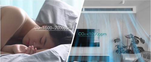 其核心工作原理,是通過新風空調(diào)一體機將室外的新風過濾掉PM10、PM2.5主要污染物后,向房間里輸送鮮氧新風,再通過主機回風口,將房間里不再新鮮的空氣(比如廚房煙氣等)抽到室外。新風空調(diào)機的主要功能區(qū)ERV,可以有效的回收房間內(nèi)的熱度和濕度,再循環(huán)到房間內(nèi),從而實現(xiàn)恒溫恒濕,且確保室內(nèi)空氣新鮮度,中綠東岳府配置的空氣質(zhì)量監(jiān)測系統(tǒng),可確保室內(nèi)CO?年均濃度≤1000ppm,最避免因CO?數(shù)值超過1000ppm產(chǎn)生的沉悶、注意力不集中、心悸等情況的產(chǎn)生。