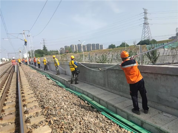 隨著作業(yè)人員默契配合下,起錨、放線、滑輪懸掛固定、落錨等各個工序有序推進,中國中鐵電氣化局運管公司上海維管處合肥維管段橫跨包公大道供電線恢復架設,標志著淮南線接觸網(wǎng)遷改施工進入最后階段。
