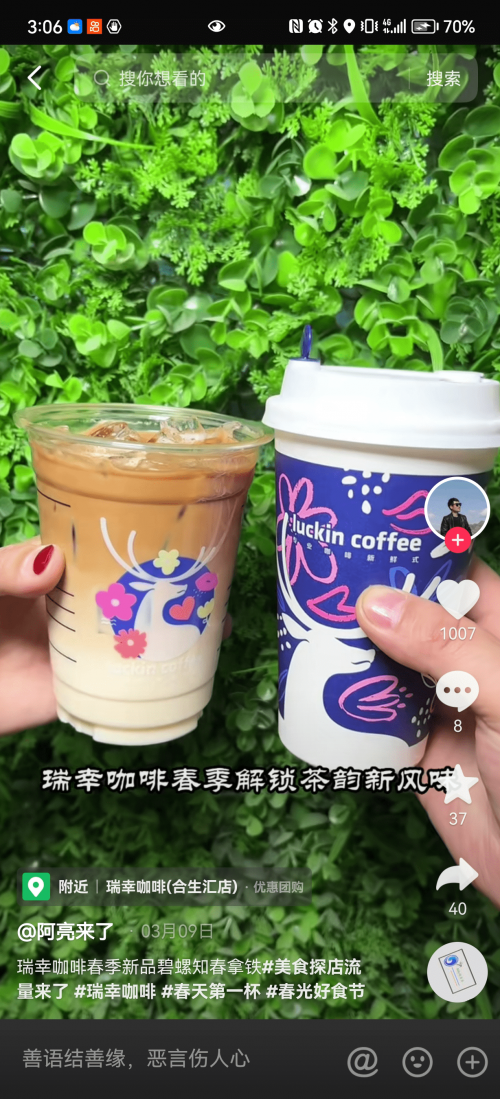 咖啡品類(lèi)更是春日營(yíng)銷(xiāo)的主力軍,3 月 6 日,瑞幸官宣新品「碧螺知春拿鐵」,新品與被譽(yù)為「鄉(xiāng)村超?!沟年懴扇撕献鳌T谛缕吠平檫^(guò)程中,瑞幸不僅將直播間搬到了生茶園,打造沉浸式的直播體驗(yàn),讓用戶在觀看直播享受“寵粉式”福利的同時(shí),感受到濃濃的春日氛圍感。不僅如此,瑞幸邀約了一萬(wàn)名LV3以上的短視頻達(dá)人,借助帶貨達(dá)人力量為瑞幸茶咖季種草引流,引發(fā)站內(nèi)視頻投稿數(shù)4.7萬(wàn)條。同期,瑞幸咖啡篩選了33位直播達(dá)人,在多城市開(kāi)展了“瑞幸茶咖季”為主題的系列達(dá)人直播,通過(guò)直播達(dá)人承接品牌官方自播熱度和流量。「春光好食節(jié)」?fàn)I銷(xiāo)節(jié)點(diǎn)中,通過(guò)短視頻種草、官方直播及達(dá)人直播,以一系列別具一格的“茶咖大秀”實(shí)現(xiàn)破圈層營(yíng)銷(xiāo),迅速完成種草全網(wǎng),最終獲得破億的支付GMV。