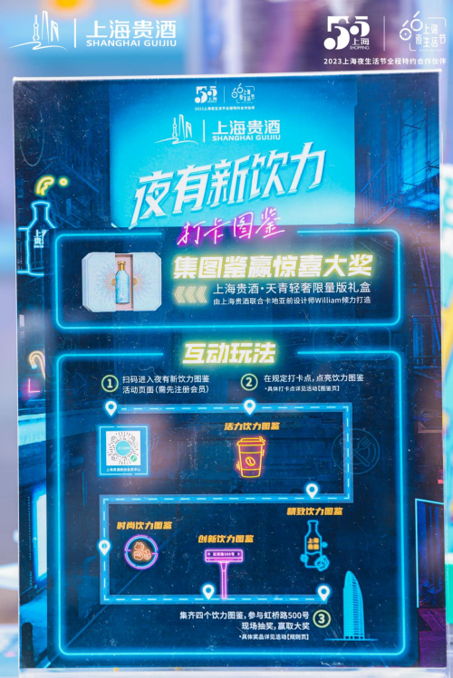 “2023上海夜生活節(jié)”正如火如荼地進(jìn)行,上海貴酒營造創(chuàng)新消費(fèi)體驗(yàn),撬動(dòng)消費(fèi)活力,打造了貫穿整個(gè)6月“夜有新飲力”主題活動(dòng),攜手滬上高端餐飲及深受年輕消費(fèi)者青睞的網(wǎng)紅餐廳發(fā)起全城總動(dòng)員,創(chuàng)造“餐+酒+娛”場景融合新模式 ,形成線上線下互動(dòng)營銷、休閑娛樂于一體的創(chuàng)新消費(fèi)場景,助力上海點(diǎn)亮城市夜經(jīng)濟(jì)。