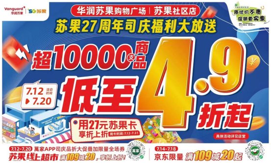 響應(yīng)政府促消費擴內(nèi)需,進(jìn)一步激發(fā)市場活力的號召。蘇果于7月12日-7月20日期間,將打造為期9天的司慶購物節(jié),聯(lián)合百家重點廠商推出10000余商品4.9折起、會員超值換購、跨界合作等一攬子促消費舉措,同時賦能商品力,全方位升級購物體驗,屆時將釋放新一輪消費潛力。
