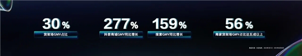 2023抖音電商生態(tài)大會數(shù)據(jù)顯示:從2022年5月1日至今年4月30日抖音商城中,貨架場GMV占比達(dá)到30%,搜索的GMV同比增長159%,有56%的商家貨架場GMV占比超過50%。