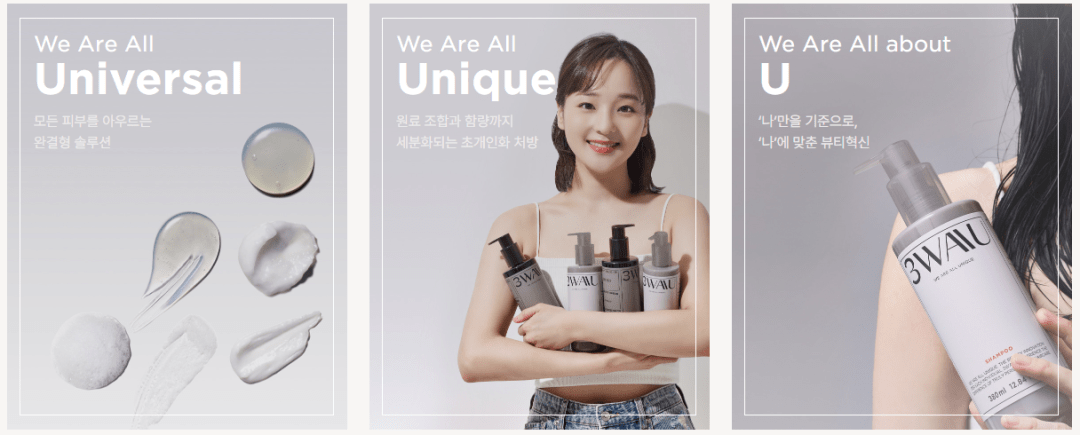 3WAAU是韓國COSMAX科絲美詩今年3月推出的定制型化妝品平臺(tái)。WAAU取自We Are All Unique的縮寫,包含了面向個(gè)人化·細(xì)分化化妝品市場的服務(wù)理念。