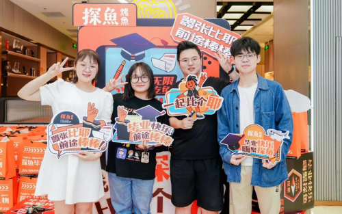 學(xué)生是Z世代的另一重身份,他們愛玩、注重體驗(yàn)和儀式感,樂于嘗新,對未知充滿期待。面對畢業(yè)這一人生重要節(jié)點(diǎn),好友相聚的聚餐場景需求自然形成,但餐飲品牌卻很少可以捕捉這一痛點(diǎn)。專注年輕化、關(guān)注年輕群體的探魚發(fā)掘場景需求、升級互動(dòng)方式,把握這一機(jī)遇,也收獲了良好的正向反饋。