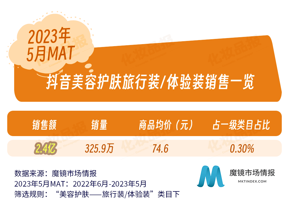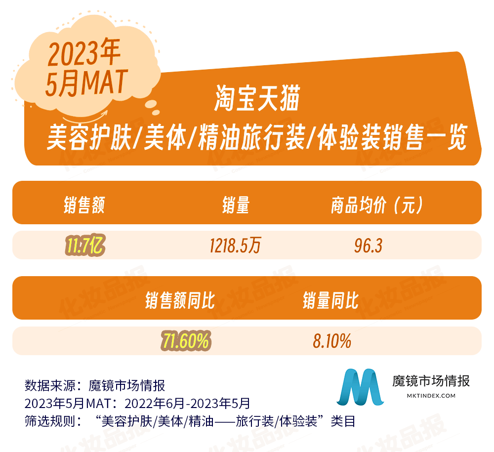 近日,國內(nèi)零售洞察公司魔鏡市場情報發(fā)布了一份關(guān)于化妝品旅行裝/體驗(yàn)裝在各主流電商平臺的銷售調(diào)研報告。報告統(tǒng)計的類目主要針對彩妝、香水、美妝工具、美容護(hù)膚、美體和精油類旅行裝/體驗(yàn)裝,統(tǒng)計調(diào)查的平臺涵蓋淘寶、天貓、抖音等,統(tǒng)計周期為2022年6月-2023年5月。