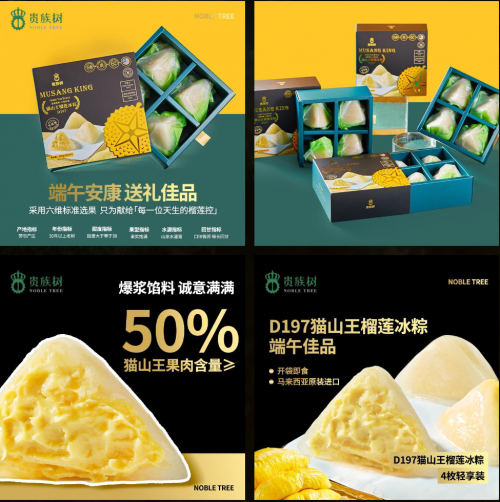 該產(chǎn)品涵蓋三大核心買點(diǎn):原材料珍貴——黑刺榴蓮珍貴稀有,人稱“樹上黃金”,“貴族樹品牌甄選當(dāng)季新鮮黑刺榴蓮為餡料,旨在讓每位‘榴蓮控’能在佳節(jié)品嘗到其絕妙味道?!? 該品牌經(jīng)理說(shuō)。用料豐富——黑刺榴蓮果肉占整個(gè)月餅配料比例多于50%,“入口即能感受甜蜜暴擊,不僅層次豐富,且為奶油質(zhì)地,口感絲滑綿密。”