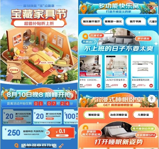為了滿足“輕改大隊”的煥家需求,8月10日晚8點,京東寶藏家具節(jié)全面開啟,打出“即刻煥新 ‘家’點新意”的消費主張,聯合芝華仕、喜臨門、顧家家居、雅蘭、樂歌、源氏木語等家具大牌構建多功能快樂窩、沉浸式睡眠臥室、氛圍感電競房、智能陽臺、兒童學習區(qū)等多趨勢場景,并聚焦年輕人鐘愛的奶油風、原木風、侘寂風等高顏值風格,奉上眾多能讓生活增加新鮮感的寶藏家具好物。想要和李女士夫婦一樣,在不拆墻體的情況下,通過添置家具單品來極速煥新家的消費者,可以從中找找靈感,并選購心儀的寶藏家具。