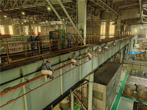 截止18點00分,隨著硅鋼事業(yè)部第二智慧工廠6-2行車滑線檢修項目一次性試車成功,標志著第二智慧行車滑線檢修項目施工任務圓滿結束,刷新了滑線檢修項目施工最短用時的新紀錄。中冶寶鋼基層單位高度重視,開工前專業(yè)點檢人員積極與硅鋼事業(yè)部溝通協(xié)調停機時間,同時從班組抽調出10余名精兵強將參與到此次劃線檢修的施工中。施工前現(xiàn)場進行列隊安全交底,辦理相關手續(xù),落實各項安全措施,嚴格執(zhí)行“三方掛牌”制度。在檢修過程中,公司結合自身特點和實際情況,認真落實二級高危安全要求,作業(yè)人員佩戴和正確使用合格的“四合一”檢測儀。從安全交底的落實到安全帶的規(guī)范佩戴,從安全繩的安裝到現(xiàn)場安全的監(jiān)護,對每一個環(huán)節(jié)都絲毫不敢懈怠。在克服高空作業(yè)、戰(zhàn)線長、工期緊等施工難度的同時,對施工質量也高標準嚴要求,滑線吊掛夾更換按照維修作業(yè)標準,做好每一道工序每一個步驟,嚴把質量關,為檢修用時提供了有力保證,