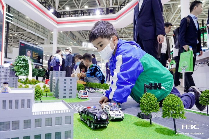 主展區(qū)以“為時(shí)代賦智慧”為主題,從“數(shù)智賦能”和“數(shù)智基石”兩方面展示了數(shù)字化全棧實(shí)力。在“數(shù)智賦能“模塊,與會(huì)者可以從數(shù)實(shí)融合、數(shù)智溫度和數(shù)實(shí)互現(xiàn)三個(gè)維度了解新華三在智慧工廠、企業(yè)大腦、產(chǎn)業(yè)智治、未來(lái)鄉(xiāng)村、智慧城市、智慧園區(qū)等方面的創(chuàng)新應(yīng)用。“數(shù)智基石”模塊則從包羅萬(wàn)象的云服務(wù)、無(wú)所不在的智連接、兼容并蓄的強(qiáng)算力以及價(jià)值煥新的數(shù)據(jù)要素四個(gè)維度,盡顯新華三在支持?jǐn)?shù)字經(jīng)濟(jì)發(fā)展,賦能數(shù)字中國(guó)建設(shè)方面的堅(jiān)實(shí)技術(shù)實(shí)力。