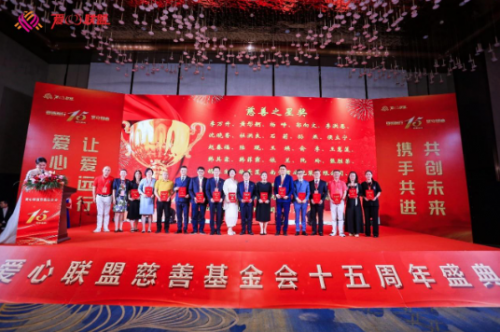 下午,愛心聯(lián)盟慈善基金會成立十五周年盛典隆重舉行。全國勞動模范、全國五一勞動獎?wù)芦@得者、全國道德模范、吉林省工商聯(lián)副主席、吉林省河南商會會長、愛心聯(lián)盟慈善基金會理事長李萬升,河南省政府駐上海辦副主任胡華杰,哈爾濱市政府駐上海辦經(jīng)協(xié)處處長田磊,中國浦東干部學(xué)院黨建研究中心主任吳濤,上海中信國旅總經(jīng)理羅良剛,山東馳恒投資發(fā)展有限公司董事長王久紅,昆山物流協(xié)會會長孫喜,來伊份股份有限公司高級副總裁趙漢利,新希望集團(tuán)草根資本投資部部長許云龍,上海歐邦醫(yī)療管理有限公司創(chuàng)始人崔海茹,眼界(上海)健康管理有限公司創(chuàng)始人謝攖寧,浙江省有機(jī)產(chǎn)業(yè)協(xié)會理事長胡珊,上海妃魚股份高級副總裁李財(cái)鋒,愛心聯(lián)盟慈善基金會執(zhí)行理事長楊崢,以及上海市工商聯(lián)直屬商會和各省市在滬異地商會秘書長等來自全國各地的精英和愛心聯(lián)盟成員300余人歡聚一堂,共同慶祝愛心聯(lián)盟慈善基金會成立十五周年。