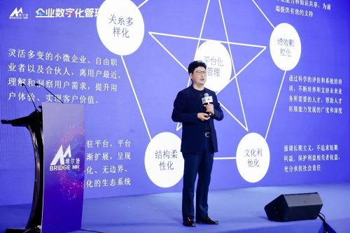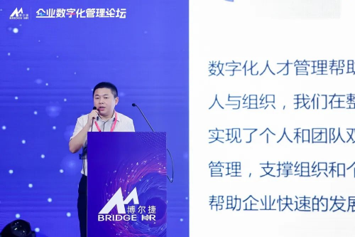 侯博士以2019年與中歐國際工商學(xué)院的忻榕教授、阿里巴巴產(chǎn)業(yè)互聯(lián)網(wǎng)中心主任陳威如教授歷經(jīng)兩年共同創(chuàng)作的《平臺化管理》一書作為理論指導(dǎo),以及多年人力資源行業(yè)經(jīng)驗(yàn)的沉淀和敏銳的市場洞察,總結(jié)構(gòu)建平臺化企業(yè)的重要性,包括小前端、強(qiáng)中臺和穩(wěn)后臺的建設(shè)。侯博士介紹了平臺化管理的五化模型:能力數(shù)字化、關(guān)系數(shù)字化、績效顆?;?、結(jié)構(gòu)柔性化、以及文化利他化。侯博士分享了博爾捷集團(tuán)的成功經(jīng)驗(yàn),鼓勵(lì)其他企業(yè)在探索和實(shí)踐中進(jìn)行數(shù)字化轉(zhuǎn)型和組織變革,以實(shí)現(xiàn)平臺化管理。