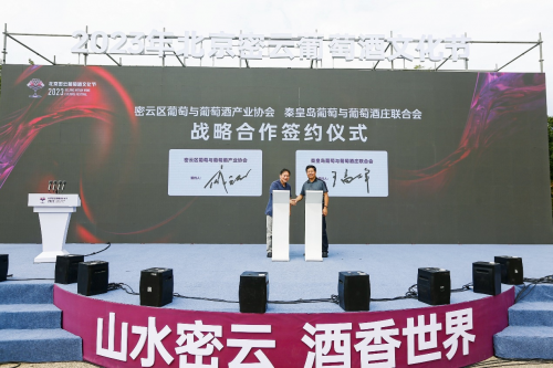 開幕式上,北京市密云區(qū)人民政府同煙臺(tái)張?jiān)F咸厌劸乒煞萦邢薰?#xff0c;密云區(qū)葡萄與葡萄酒產(chǎn)業(yè)協(xié)會(huì)同秦皇島葡萄與葡萄酒莊聯(lián)合會(huì)分別簽署戰(zhàn)略合作協(xié)議,通過增強(qiáng)與先進(jìn)地區(qū)的交流合作,提升密云葡萄酒的個(gè)性化和競(jìng)爭(zhēng)力,同時(shí)為密云葡萄酒產(chǎn)業(yè)創(chuàng)新升級(jí)打造多場(chǎng)景的開放性平臺(tái)。