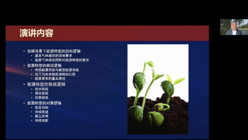 中國能源研究會常務理事、紅杉中國投資合伙人李俊峰通過視頻演講的形式,從雙碳背景下能源轉(zhuǎn)型的目標邏輯、路徑邏輯、挑戰(zhàn)邏輯、對策邏輯等多個方面著手,分析了《能源綠色轉(zhuǎn)型的邏輯》。