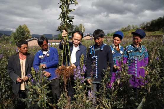 耿福能親自到田間地頭指導(dǎo)彝族群眾種植中藥材