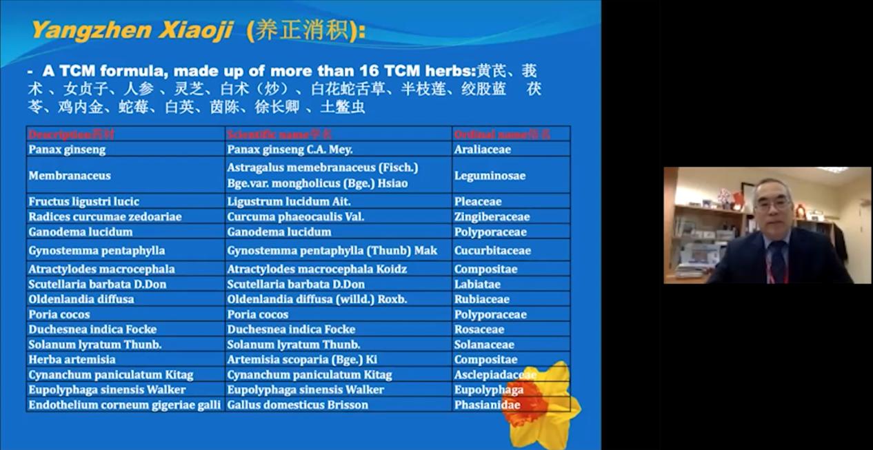英國(guó)卡迪夫大學(xué)醫(yī)學(xué)院的姜文國(guó)教授以《腫瘤轉(zhuǎn)移的機(jī)制與治療》為主題,就腫瘤轉(zhuǎn)移的機(jī)制及中醫(yī)藥在腫瘤防治中的療效和優(yōu)勢(shì)進(jìn)行了詳細(xì)解讀。姜文國(guó)教授指出,養(yǎng)正消積膠囊作為一種廣譜抗腫瘤中藥,與抗血管新生的靶向藥物聯(lián)合應(yīng)用后,可降低或延緩這些靶向藥耐藥性的發(fā)生。早期的系列臨床研究發(fā)現(xiàn),腫瘤患者在化療前就開(kāi)始服用養(yǎng)正消積膠囊,可發(fā)揮增效減毒的作用,不僅能增加患者對(duì)化療藥物的敏感性,提高療效,還能緩解患者癥狀,提高患者生活質(zhì)量,減少疲勞癥狀、食欲降低等化療副反應(yīng)。這些研究涉及到胃癌、胰腺癌、肺癌和乳腺癌等多種腫瘤類(lèi)型。