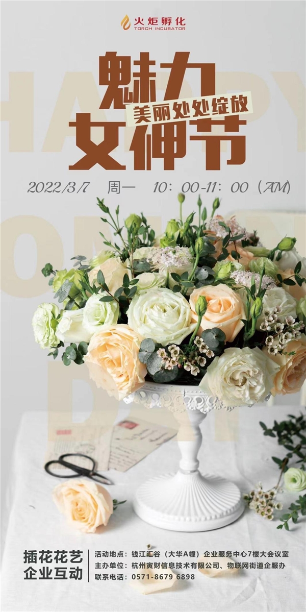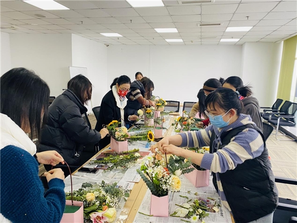 國際三八婦女節(jié)來臨之際,為豐富園區(qū)婦女企業(yè)員工的業(yè)余生活、陶冶情操,3月7日上午,火炬孵化博濟錢江匯谷運營服務中心聯(lián)合物聯(lián)網(wǎng)指揮部企服辦在7樓會議室開展了一場“魅力處處綻放美麗處處綻放”三八節(jié)插花花藝園企互動。共計12位員工在此體驗插花藝術,感受插花藝術帶來的精神享受。