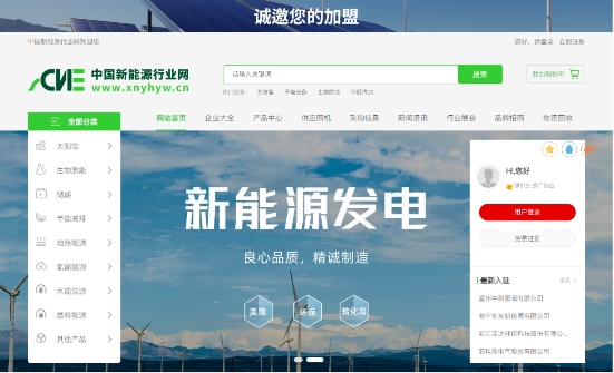 據(jù)悉,新能源行業(yè)網(wǎng)目前已正式上線,秉承開展新能源,筑造新生活的發(fā)展理念,新能源行業(yè)網(wǎng)致力成為行業(yè)新標(biāo)桿,誠邀各大商家加盟入駐,壯大自身企業(yè)的同時也為中國新能源發(fā)展貢獻一份力量!