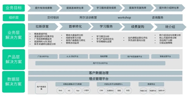 業(yè)務(wù)層:神策數(shù)據(jù)擁有豐富的教育行業(yè)交付經(jīng)驗,現(xiàn)已服務(wù)百余家知名教培企業(yè),能夠充分理解教培業(yè)務(wù),為企業(yè)提供個性化、數(shù)字化發(fā)展規(guī)劃與支持。