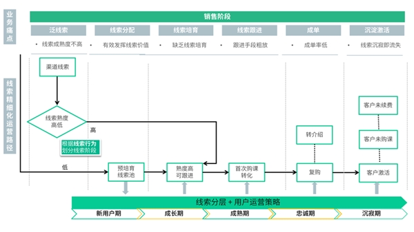 當前,教培企業(yè)大多面臨著“大量公海線索難以管理,傳統(tǒng)電銷方式不僅耗費人力還打擾用戶”的困境,因此,設(shè)計一套可落地的線索分層培育體系是十分必要的。