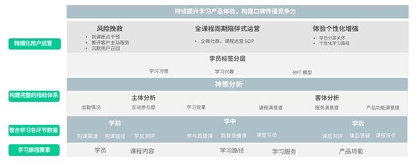 教培機構(gòu)的口碑依賴于學員對課程服務(wù)的評價,因此,基于學習主體與客體的全面分析,是改進課程、驅(qū)動學習產(chǎn)品體驗升級的重要依據(jù)。