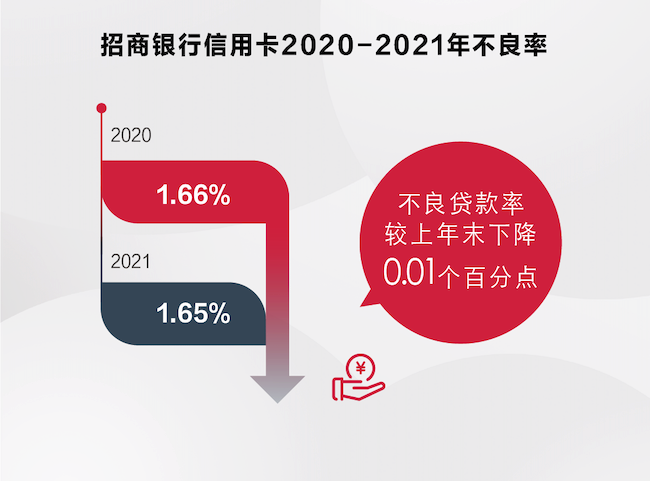 近年來(lái),經(jīng)濟(jì)承壓、共債風(fēng)險(xiǎn)、監(jiān)管趨嚴(yán)、業(yè)務(wù)收緊等因素使信用卡行業(yè)的風(fēng)險(xiǎn)管控面臨較大壓力,但招行信用卡不良率穩(wěn)中有降,風(fēng)險(xiǎn)平穩(wěn)可控。據(jù)財(cái)報(bào),2021年,招行信用卡新生成不良貸款292.06億元,同比減少32.35億元,信用卡不良率1.65%,較上年末下降0.01個(gè)百分點(diǎn)。