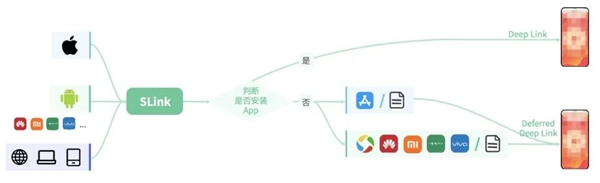 2、短信/郵件營(yíng)銷(xiāo):廣告主可以在營(yíng)銷(xiāo)短信/郵件中附上SLink鏈接,用戶點(diǎn)擊后即可順暢地跳轉(zhuǎn)至廣告主的App中瀏覽營(yíng)銷(xiāo)內(nèi)容,或下載并打開(kāi)App后,直接跳轉(zhuǎn)瀏覽營(yíng)銷(xiāo)內(nèi)容。