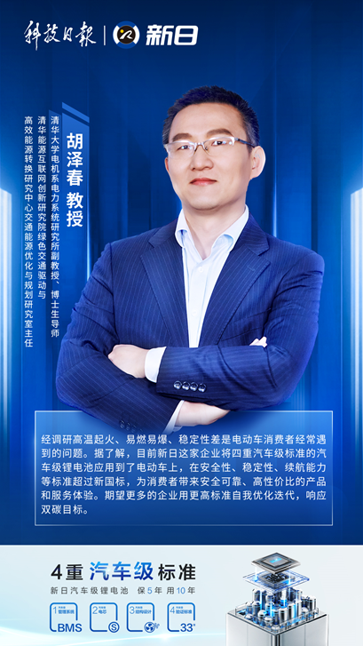 新日汽車級鋰電池的硬核實力,不僅經過了實驗室的嚴苛檢驗,也獲得了清華大學電機系電力系統(tǒng)研究所教授、博士生導師胡澤春教授的證言,他認為具備“4重汽車級標準”的汽車級鋰電池應用到電動車上,在安全性、穩(wěn)定性、續(xù)航能力等方面均超過新國標。