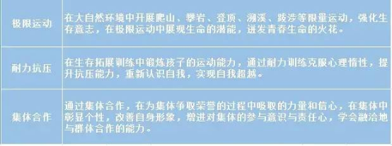 堅持秉承“教人倫、順人性、終身受益”的教育理念,以“德智體美勞”為中心展開訓練營活動,引導問題學生進行回歸健康心態(tài),培養(yǎng)孩子的綜合素質(zhì),去體驗勇敢、突破、感恩、團結(jié)、責任。