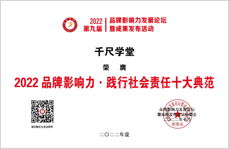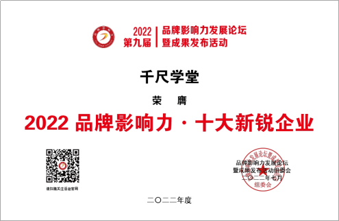 近日,由《發(fā)現(xiàn)品牌》欄目組、對外經(jīng)濟(jì)貿(mào)易大學(xué)中國國際品牌戰(zhàn)略研究中心、《中國企業(yè)報》集團(tuán)主辦的2022品牌影響力發(fā)展論壇暨成果發(fā)布活動正式舉辦?;顒右浴按罅Πl(fā)展品牌戰(zhàn)略促進(jìn)經(jīng)濟(jì)高質(zhì)量發(fā)展”為主題。圍繞中國品牌創(chuàng)建行動,培育新型消費,實施領(lǐng)航企業(yè)培育工程,促進(jìn)專精特新小巨人企業(yè)培育等內(nèi)容展開分析探討。在著重推介具有優(yōu)秀成長性或影響力的品牌環(huán)節(jié)中,千尺學(xué)堂榮膺“2022品牌影響力·十大新銳企業(yè)”、“2022品牌影響力·踐行社會責(zé)任十大典范”兩項大獎。