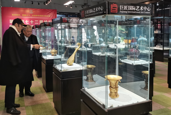 活動(dòng)期間,與會(huì)嘉賓參觀巨匠國(guó)際藝術(shù)中心館藏臻品展