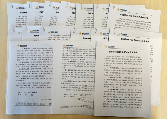 該公司紀(jì)委從發(fā)布簽訂《招商漳州2023年廉潔從業(yè)承諾書》后,黨委領(lǐng)導(dǎo)班子成員帶頭簽訂,11個部門和下屬企業(yè)黨支部,積極組織黨員干部員工認(rèn)真學(xué)習(xí)承諾內(nèi)容,實現(xiàn)210位在崗干部員工人人參與、全員覆蓋,進一步強化自覺遵守廉潔從業(yè)規(guī)定的思想自覺和行動自覺。