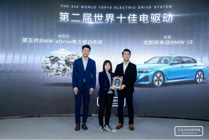 世界十佳動力系統(tǒng)評委會秘書長孫浩然、汽車評價(jià)研究院副院長李鏑鋒為BMW企業(yè)代表頒獎