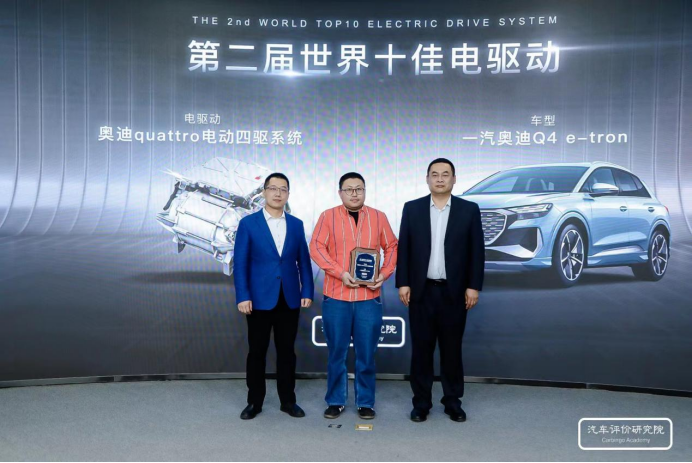 汽車評價(jià)研究院首席研究員王冀,北京航空航天大學(xué)交通科學(xué)與工程學(xué)院教授、國家乘用車自動變速器工程技術(shù)研究中心副主任、中國汽車工程學(xué)會齒輪技術(shù)分會副主任王書翰,為一汽奧迪企業(yè)代表頒獎