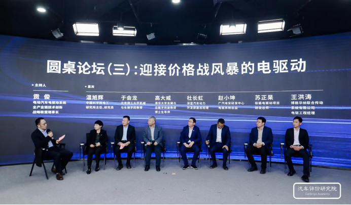 在電動汽車電驅(qū)動系統(tǒng)全產(chǎn)業(yè)鏈技術(shù)創(chuàng)新戰(zhàn)略聯(lián)盟理事長貢俊的主持下,中國科學(xué)院電工研究所主任、研究員溫旭輝,北京理工大學(xué)機(jī)械與車輛學(xué)院教授于會龍,清華大學(xué)車輛與運(yùn)載學(xué)院副教授、博士生導(dǎo)師高大威,深藍(lán)汽車動力開發(fā)部副總經(jīng)理杜長虹,廣汽埃安研發(fā)中心電驅(qū)系統(tǒng)總監(jiān)趙小坤,極狐電驅(qū)動項(xiàng)目研發(fā)總師蘇正杲,博格華納聯(lián)合傳動系統(tǒng)有限公司電驅(qū)工程經(jīng)理王洪濤等嘉賓,圍繞“迎接價(jià)格戰(zhàn)風(fēng)暴的電驅(qū)動”這一主題進(jìn)行了交流討論。