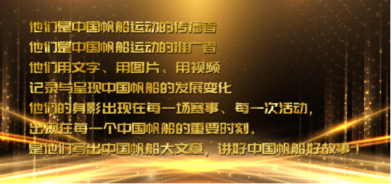 中國帆船運動不可缺少傳播者和推動者,晚會感謝了為中國帆船宣傳推廣做出突出貢獻的中央電視臺體育頻道、新華社體育部、中國體育報、人民日報體育部、新京報體育新聞部、中國日報體育部、工人日報國際與體育新聞部、秦皇島市委宣傳部。