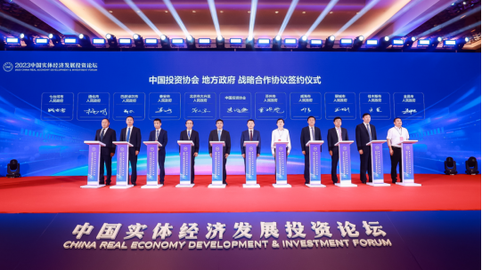 在簽約儀式環(huán)節(jié),中國投資協(xié)會和11個地方政府、10家上市公司及行業(yè)協(xié)會、10家金融機構(gòu)、10家項目合作單位簽署了戰(zhàn)略合作協(xié)議。