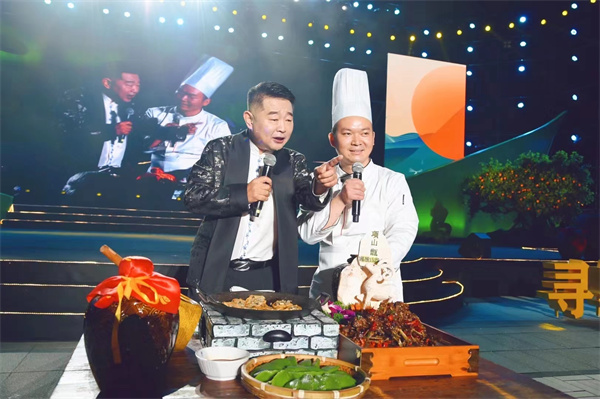 客家韻、紅土風、東江源、橘鄉(xiāng)情是尋烏縣創(chuàng)新塑造的四大品牌,其中,客家韻,是記憶,是鄉(xiāng)愁,更是傳承。尋烏是客家聚居地,勤勞智慧的客家人創(chuàng)造出了一道道客家美味,它們既是家鄉(xiāng)的滋味,也蘊藏著尋烏人的精神?;顒蝇F(xiàn)場,尋烏賓館廚師何志文向主持人以及現(xiàn)場觀眾分別制作、介紹了5道代表尋烏精神的美食,好客精神—客家米酒,奮斗精神—羊望三省,創(chuàng)新精神—客家釀豆腐(麻包豆腐),友愛精神—客家燜缸菜,