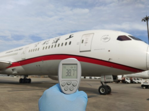 擦拭飛機(jī)起落架鏡面是航線保障中很尋常的一項(xiàng)工作,但由于今天外部氣溫較高,吸油棉接觸飛機(jī)鏡面后,東航機(jī)務(wù)員工的手心瞬間感覺(jué)炙熱