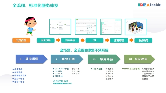 只需一間20平米的示范教室,運用標(biāo)準(zhǔn)化的服務(wù)方案,就可以把深耕行業(yè)多年沉淀的IDEA教學(xué)模式帶回機(jī)構(gòu)/學(xué)校/幼兒園/醫(yī)療單位,進(jìn)行數(shù)字化、標(biāo)準(zhǔn)化的康復(fù)干預(yù)。一個標(biāo)準(zhǔn)的、數(shù)字化管理的愛迪因教學(xué)示范教室,可以復(fù)制到任何一個線下中心,開展專業(yè)兒童康復(fù)干預(yù)。