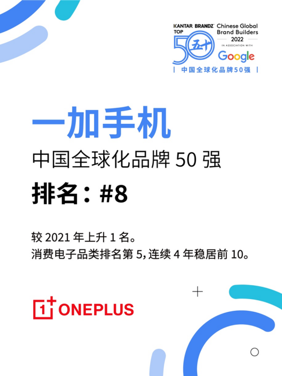 一加手機(jī)排名《中國全球化品牌50強(qiáng)》第8名