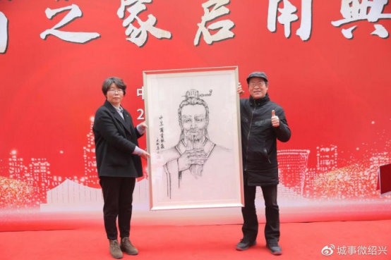 儀式最后,紹興市知名藝術(shù)家林劍華先生向《越商之家》捐贈(zèng)一幅精心創(chuàng)作的中華商圣范蠡肖像畫(huà)。