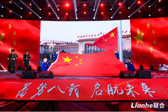 盛典當(dāng)中舉行了授旗和升國(guó)旗儀式,曾于2023年3月4日在天安門(mén)廣場(chǎng)上空飄揚(yáng)過(guò)的國(guó)旗、于2023年3月4日在天安門(mén)廣場(chǎng)上揮舞過(guò)的“天下第一刀”,帶著國(guó)家榮譽(yù)在聯(lián)合企業(yè)集團(tuán)八周年慶典上繼續(xù)履行了它們的使命。整場(chǎng)儀式莊嚴(yán)肅穆,現(xiàn)場(chǎng)嘉賓面向鮮紅的國(guó)旗一同唱響國(guó)歌。激昂嘹亮的國(guó)歌,激蕩拳拳報(bào)國(guó)之心,聯(lián)合企業(yè)集團(tuán)也將用更堅(jiān)實(shí)堅(jiān)定的步履、更振奮人心的號(hào)召,升華“企業(yè)家精神”,汲取前行的力量,融入經(jīng)濟(jì)社會(huì)發(fā)展大局,使其成為奮進(jìn)新征程的時(shí)代號(hào)角。