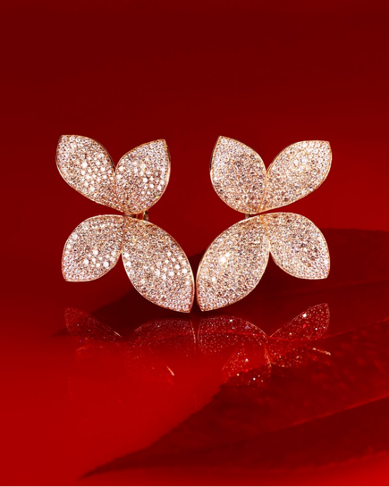 Eugenia Bruni:我個人一直對耳環(huán)十分著迷,也熱衷于研究耳環(huán),因為耳環(huán)可以點亮整體造型風(fēng)格。在我看來,如果戒指可以比作“國王”,那么耳環(huán)就是毫無疑問的“女王”。“Giardini Segreti”系列中耳環(huán)的美感在于就是它的靈動,通過不同的佩戴方式展現(xiàn)不一樣的效果。當(dāng)佩戴兩枚葉片時,則呈現(xiàn)出蝴蝶的形象,當(dāng)佩戴四枚葉片時,就呈現(xiàn)出花朵的形態(tài)。匹配佩戴時出席的場合、穿著的禮服,襯托出女性獨(dú)一無二的別樣韻致。