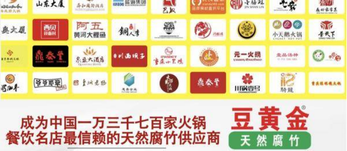 如今的豆黃金已和中國(guó)餐飲前100中的87家達(dá)成了戰(zhàn)略合作,銷售區(qū)域遍布全國(guó),目前服務(wù)的終端餐飲網(wǎng)點(diǎn)超過(guò)3萬(wàn)家,腐竹行業(yè)第一品牌名副其實(shí)。