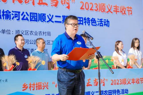 ?? 6月15日,“鄉(xiāng)村振興?小麥收割正當時”2023順義區(qū)豐收節(jié)暨北京溫榆河公園順義二期農田特色活動在順義區(qū)后沙峪鎮(zhèn)的溫榆河畔舉辦。
